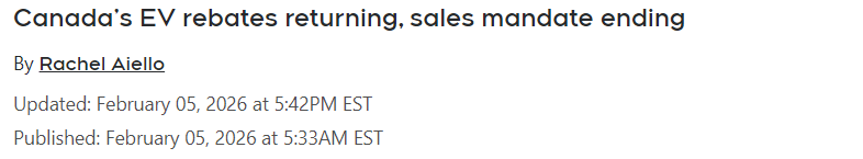 加拿大汽车经销商协会(CADA)则表示,卡尼决定废除电动汽车可用性标准这一举措表明政府愿意顺应市场现实和消费者需求。